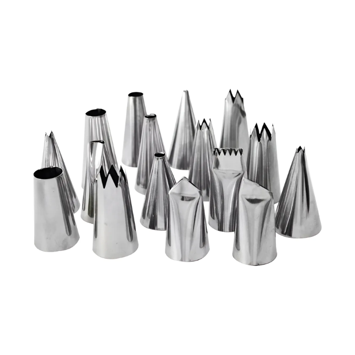 Disponíveis em diversos modelos e tamanhos, atendem tanto confeiteiros iniciantes quanto profissionais. Compatíveis com mangas de confeitar padrão, são fáceis de usar, limpar e trocar, garantindo praticidade no dia a dia.