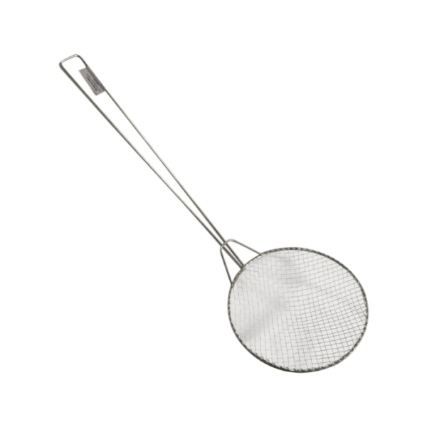 Feita de metal resistente, a escumadeira possui um cabo longo que permite manter uma distância segura do óleo quente, evitando queimaduras. O cabo de metal é durável e projetado para resistir ao calor, garantindo que você possa usar a escumadeira com segurança e conforto.